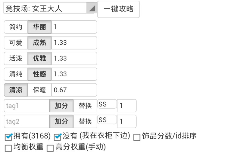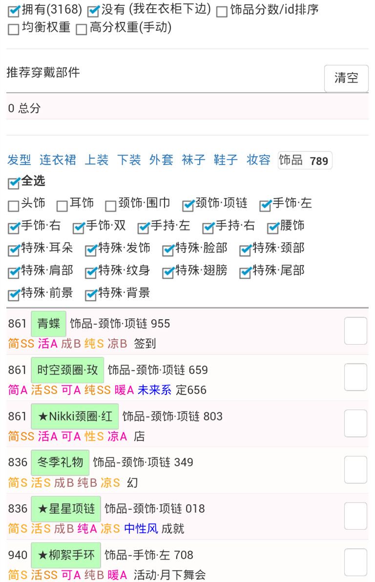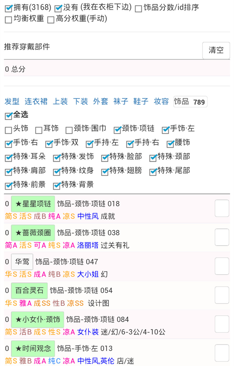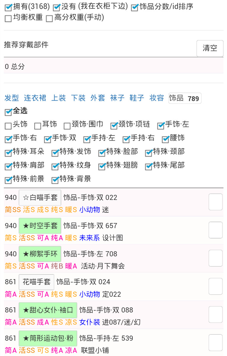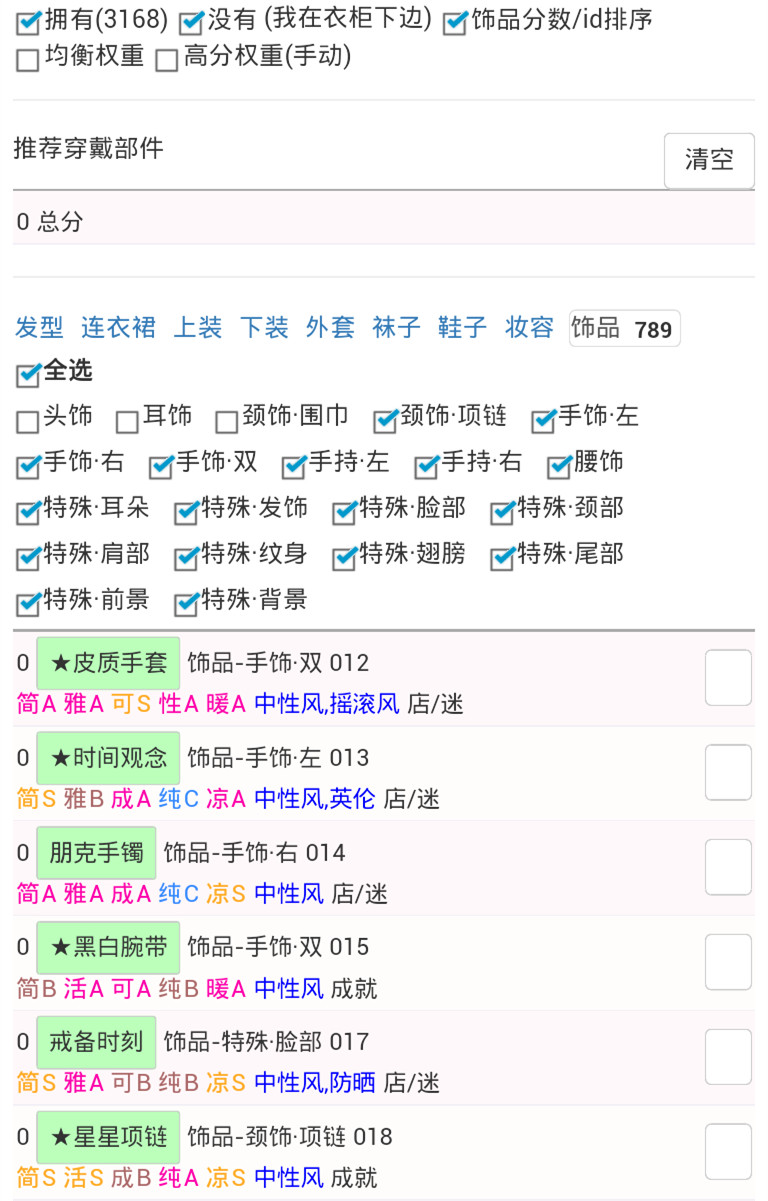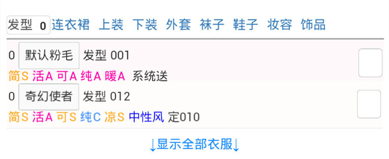 3.1.3.6.如果某个类别的推荐装备都没有,请到衣柜数据的对应类别中,选取所拥有的第一个。