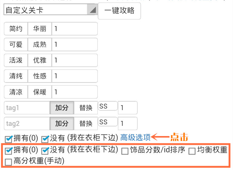 3.4.3.3.选择属性状态:不勾选时,饰品按次级分类排序。勾选时,按分数排序。